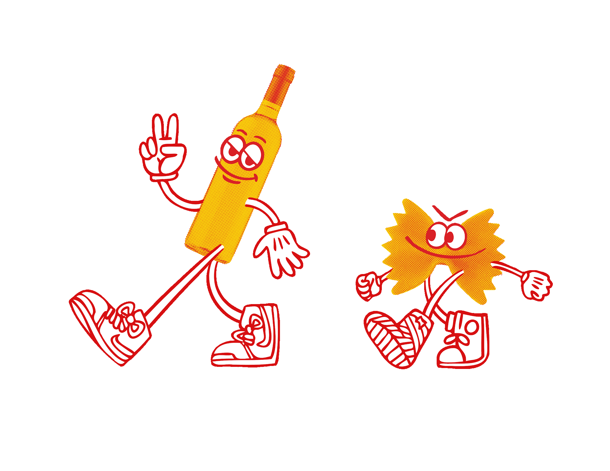I love designing funny little guys, so naturally this is one of my favorite Love and War projects to date. Very grateful to Victor Schuft for giving me the freedom to let my personality shine through on these mascots (and for giving me an excuse to practice my walk cycles). And of course, it’s super gratifying to see my work writ large in neon on O&P’s walls- extra big thank you to Saladino Design Studios for doing my noodle dudes justice!